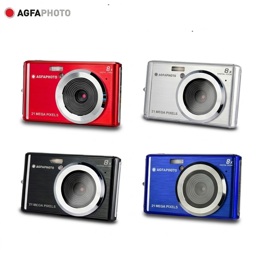 Compact | 21MP | HD Video | 8X Digital Zoom | Silver – BlackBlueRed