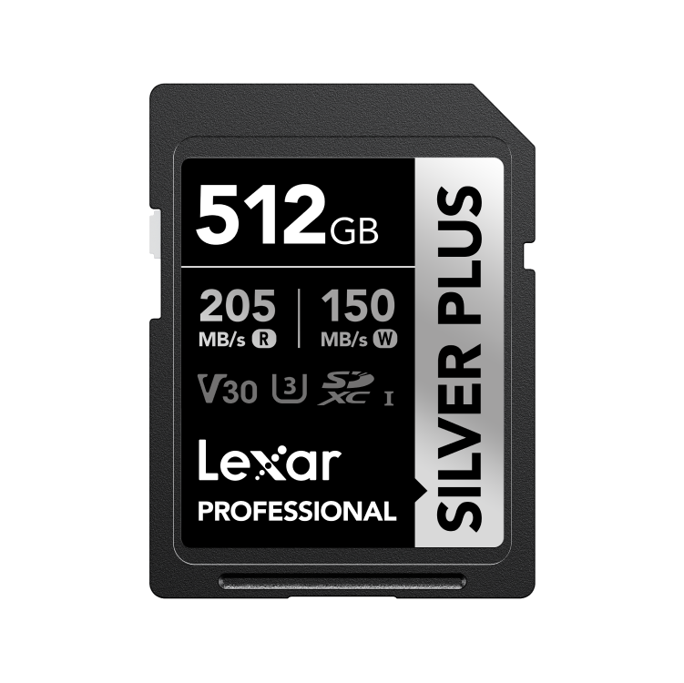 Lexar Professional 512GB SILVER PLUS UHS-I SDXC, rapide et robuste, idéale pour vidéos 4K UHD 60fps et photos en rafale.