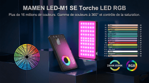 Lampe LED MAMEN LED-M1se RGB compacte avec modes CCT, RGB, FX, CRI 95, batterie 4000 mAh. Idéale pour photo, vidéo et livestream 🎬